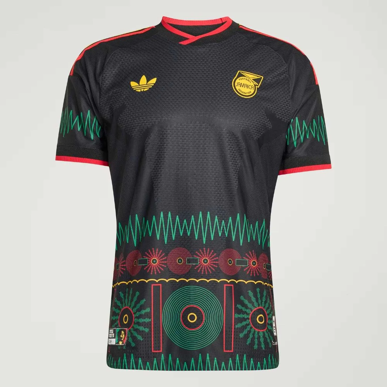 Step onto the pitch with the Jamaica 26 x Bob Marley Away Authentic Jersey, a bold tribute to the vibrant spirit of reggae and the legacy of Bob Marley. Designed for match-day intensity, this jersey channels the energy of Jamaica’s iconic colours, woven into every detail. adidas Climacool+ technology uses superior engineering and advanced materials for a cool, dry and distraction free performance. Quick drying and performance fabrics keep air flowing, so you feel comfortable even in the heat of the competition. The slim fit and transfer knit jacquard construction deliver a streamlined silhouette, while the puffed heat transfer adidas logo and club crest add a premium finish. The jersey also features a heat-applied label with hidden UV print, serving as a seal of authenticity. With adidas, every detail is crafted for athletes who demand excellence and fans who celebrate culture.
